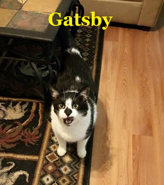 Gatsby is a beautiful black and white cat with some very unusual facial markings. Tim said it makes him look like a guy. It kind of does. He will look at us and you would swear he is giving you an Elvis smirk. He is sweet, but a little nervous right now because of his feral beginnings. He is the only survivor of a colony that had been being killed by an unknown person. He loves being held and petted. |