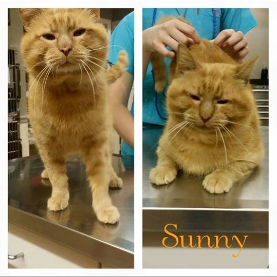 Sunny, is a gorgeous solid orange cat. He also is one of the three from Bossier Animal Hospital. Sunny was pretty shy at first, but he seems to be coming out of his shell. He is very affectionate. |
